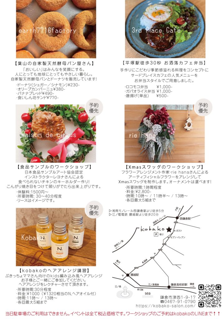 各種ワークショップのご予約はkobakoまでお問い合わせ下さい🙇